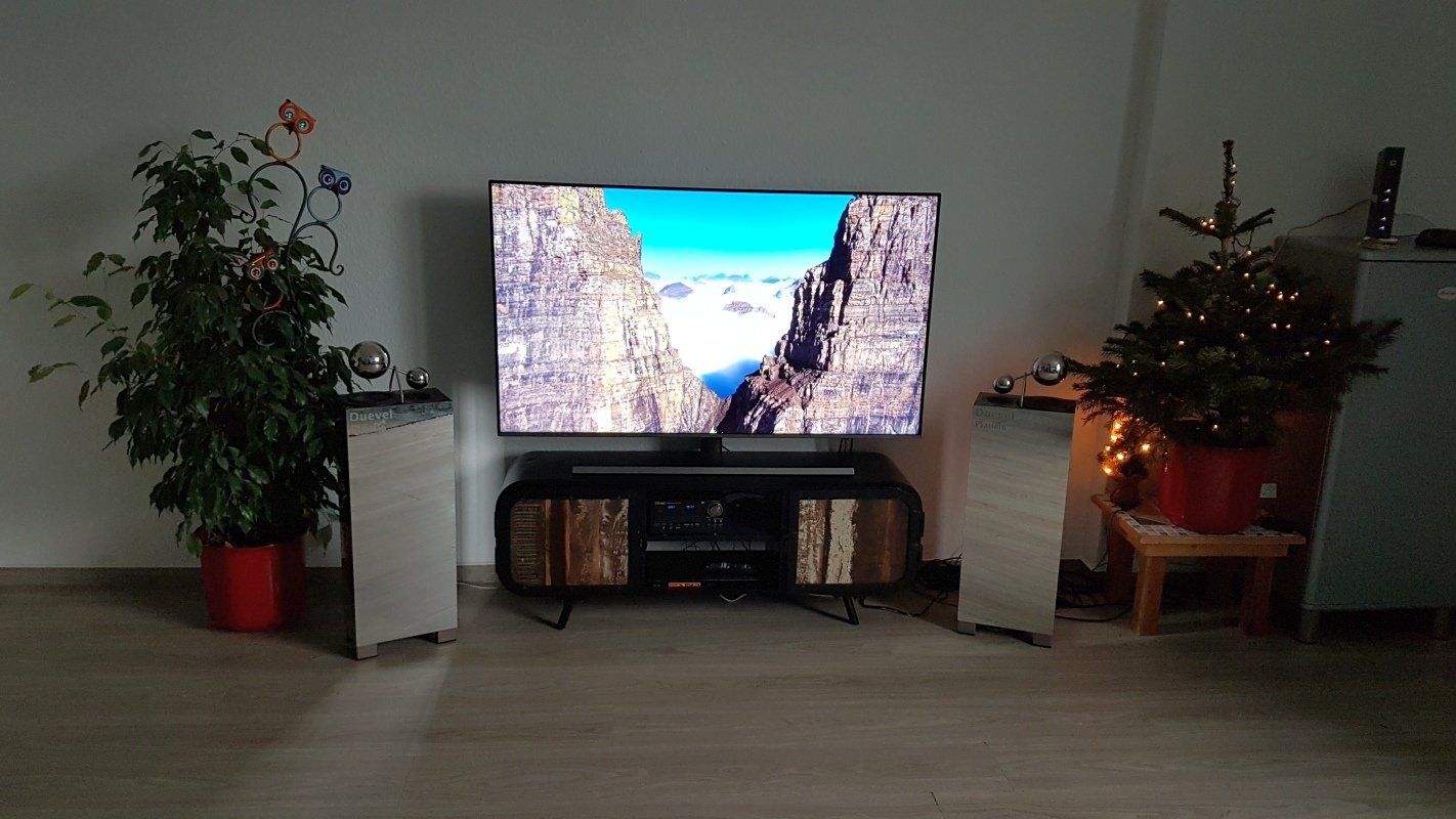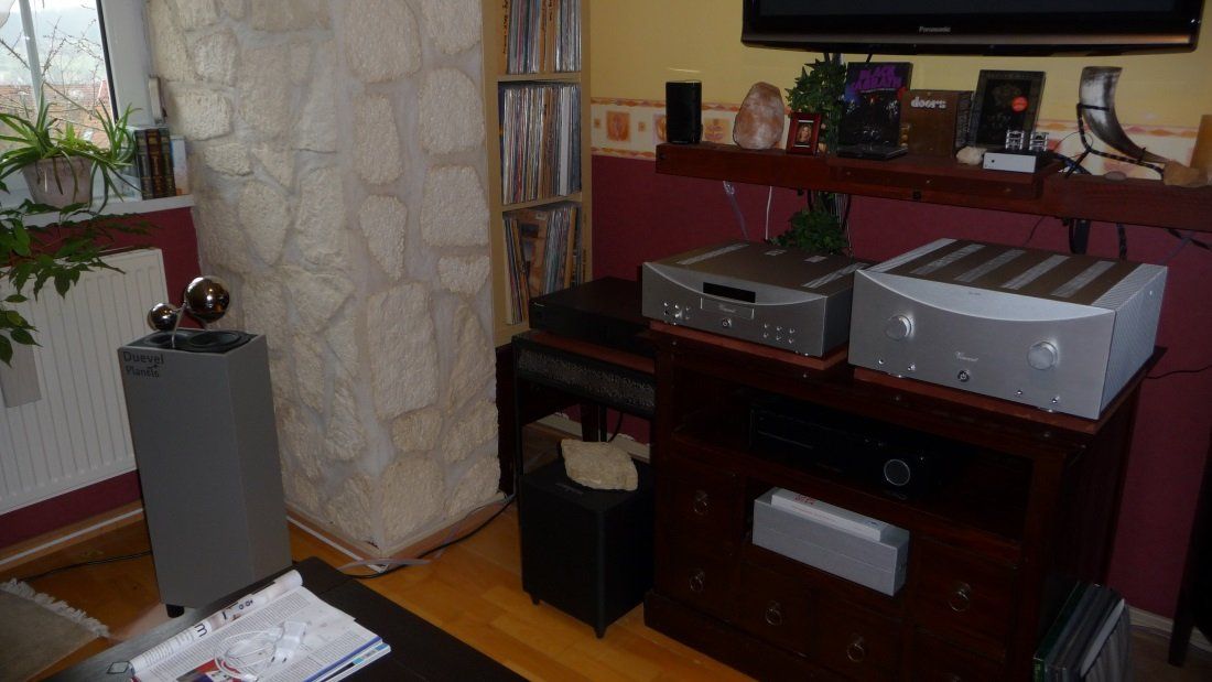 Mir war klar: Mit „klassischen“ Lautsprechern konnte das in diesem Zimmer nichts werden, außer man steht auf den Sound in einem leeren 50m Schwimmbecken. Ich hatte, um mir das zu beweisen, aus Spaß meine alten Standboxen aus Studententagen aufgestellt, das Wort „Zumutung“ ist zu wenig drastisch für den Brei, der da herauskam.