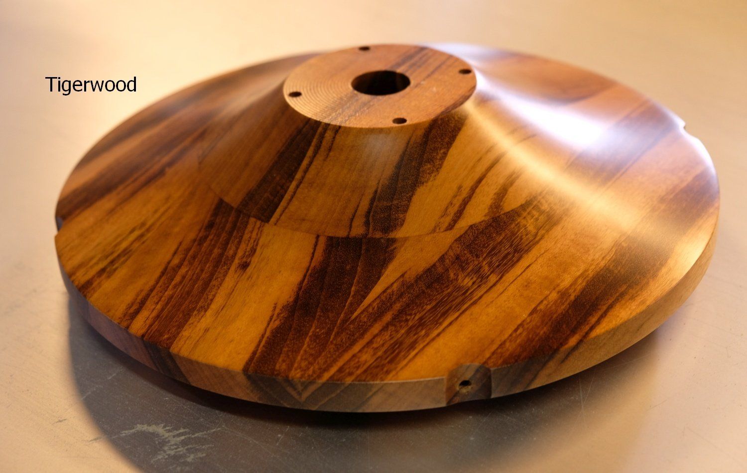 Midrange and high frequencies fire down through the horn system’s bell and is directed throughout space in 360 degrees, while bass notes are fired up and out through the same ingenuous yet simple method. Each corner is a downward firing port, created internally, with special octagonal internal bracing and tuning methods used exclusively in Duevel speakers. Perfect for mid-sized listening spaces, easily powered with SET or higher power amplifiers; let the “Beautiful Moon” light up your nights!
